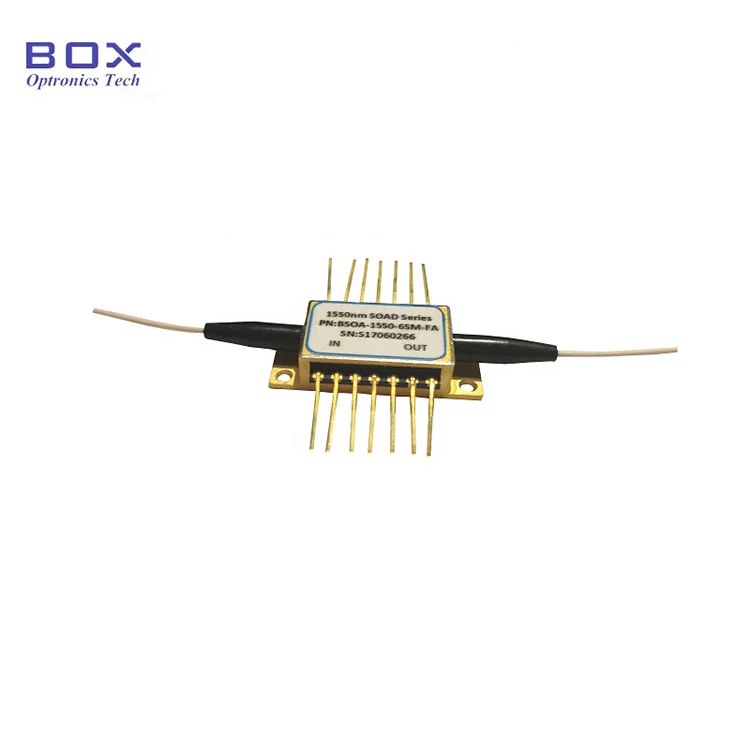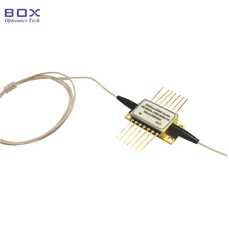 Серия продуктов оптического усилителя с полупроводниковым усилителем 1550 нм SOA, главным образом, используется для усиления оптического сигнала и может значительно увеличить выходную оптическую мощность. Продукты оснащены высоким усилением, низкой мощностью потребление и поддержание поляризации, среди прочих характеристик, и полностью обрабатываемы с внутренним контролируемым технологиями.